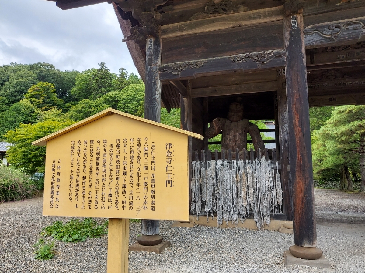 さて、町外れの左手に入る道を少しいったところに武田信玄が川中島合戦の戦勝を祈願した津金寺がある。境内には、寛政年間の建立の仁王門・聖観音像が安置された観音堂・それに滋野氏の供養塔がある。